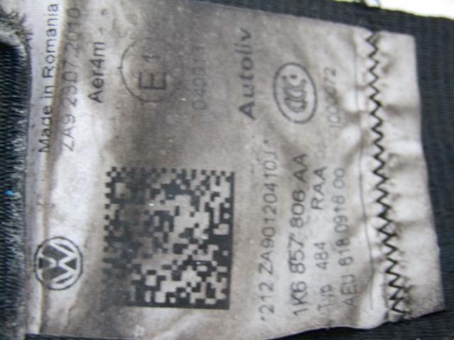 VARNOSTNI PAS OEM N. 1K6857806AA ORIGINAL REZERVNI DEL VOLKSWAGEN GOLF VI 5K1 517 AJ5 MK6 (2008-2012) DIESEL LETNIK 2011