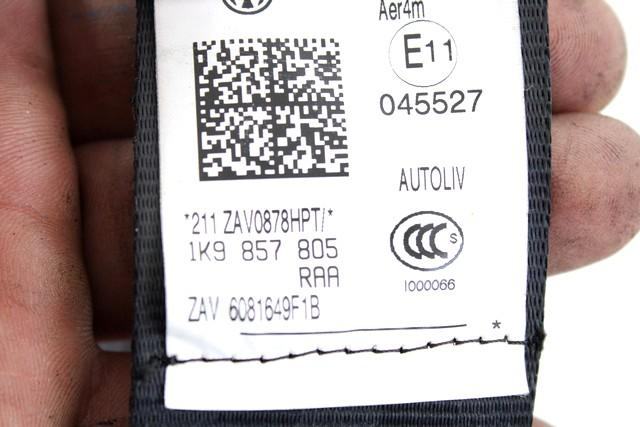 VARNOSTNI PAS OEM N. 1K9857805RAA ORIGINAL REZERVNI DEL VOLKSWAGEN GOLF V 1K1 1K5 MK5 BER/SW (02/2004-11/2008) DIESEL LETNIK 2008