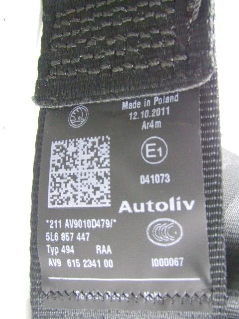 VARNOSTNI PAS OEM N. 5L6857447 ORIGINAL REZERVNI DEL SKODA YETI 5L (7/2009 - 10/2013)BENZINA LETNIK 2011