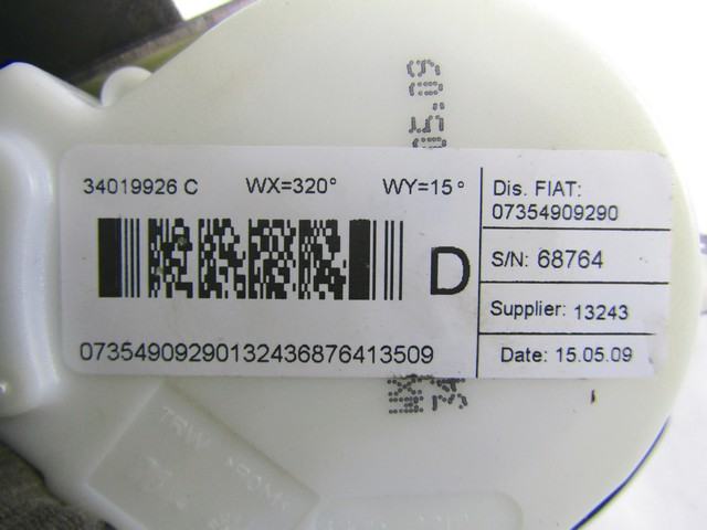 VARNOSTNI PAS OEM N. 7354909290 ORIGINAL REZERVNI DEL FIAT BRAVO 198 (02/2007 - 2010) BENZINA/GPL LETNIK 2009