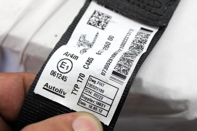 VARNOSTNI PAS OEM N. 735529189 ORIGINAL REZERVNI DEL LANCIA Y YPSILON 312 (dal 2011)BENZINA/GPL LETNIK 2012