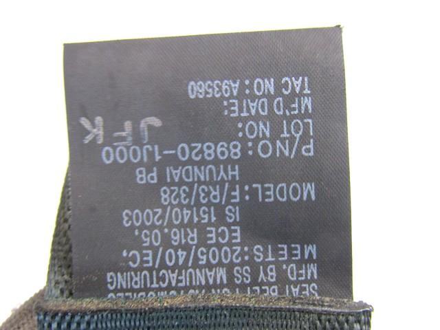 VARNOSTNI PAS OEM N. 89820-1J000 ORIGINAL REZERVNI DEL HYUNDAI I20 PB PBT MK1 R (2012 - 2014) BENZINA/GPL LETNIK 2014