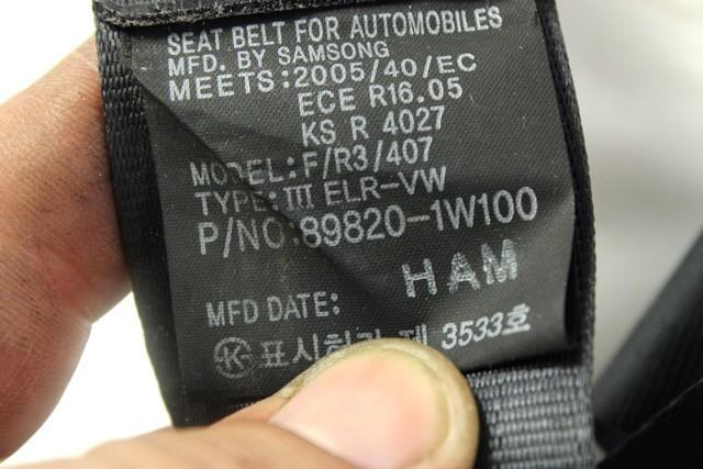 VARNOSTNI PAS OEM N. 89820-1W100 ORIGINAL REZERVNI DEL KIA RIO UB MK3 (2011 - 2017)DIESEL LETNIK 2013