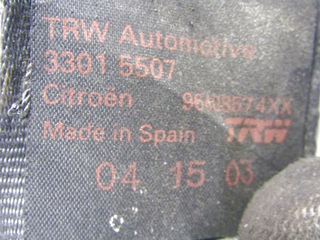 VARNOSTNI PAS OEM N. 96408574XX ORIGINAL REZERVNI DEL CITROEN C3 / PLURIEL MK1 (2002 - 09/2005) DIESEL LETNIK 2003