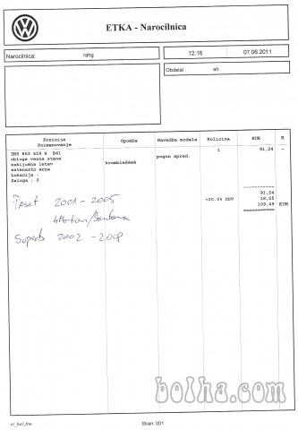 Obloga je nerabljena, šifra obloge 3B5 863 459 H B41.