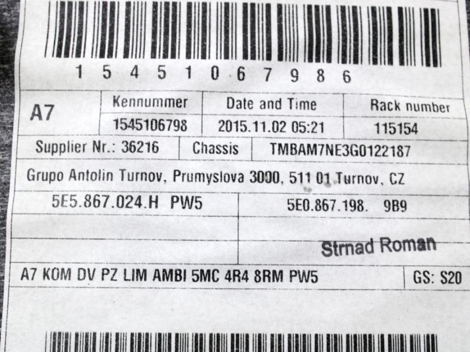 AVTORADIO OEM N. PNPDTSKOCTAVIA5E3MK3BR5P ORIGINAL REZERVNI DEL SKODA OCTAVIA MK3 5E3 NL3 NR3 (2012 - 2017)1.4 LETNIK 2015