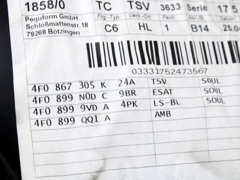 OBLOGA ZADNJIH VRAT OEM N. PNPSTADA6C6SW5P ORIGINAL REZERVNI DEL AUDI
