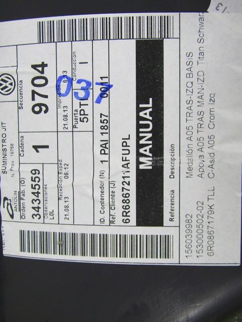 VRATNI PANEL OEM N. PNPSTVWPOLO6R1BR5P ORIGINAL REZERVNI DEL VOLKSWAGE