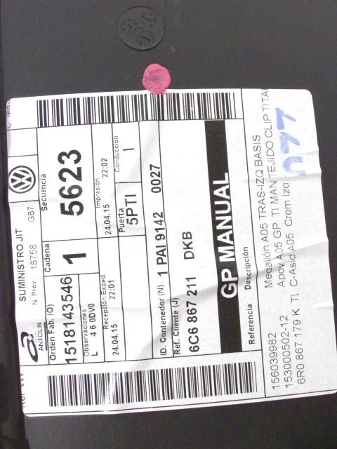 VRATNI PANEL OEM N. PNPSTVWPOLO6R1RBR5P ORIGINAL REZERVNI DEL VOLKSWAGEN POLO 6R1 6C1 R (02/2014 - 2017) DIESEL LETNIK 2015