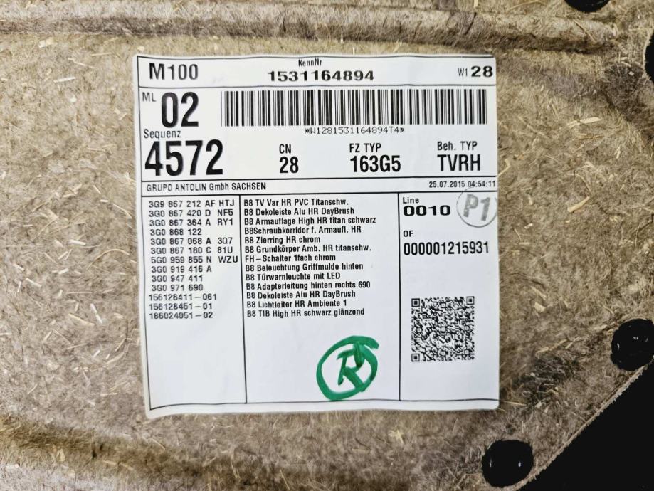 Vw Passat 3g b8 zadnje desno oblazinjenje obloga vrata 3G9867212AF