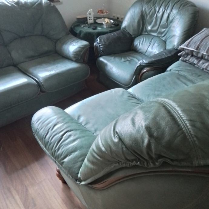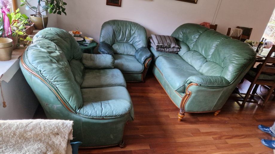 Usnjena sedežna garnitura(fotelj, dvo in trosed), italijanska izdelava, lepo ohranjena