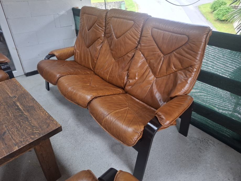 Prodam trosed in 2xfotelj. Retro, meblo. Rjavo usnje.