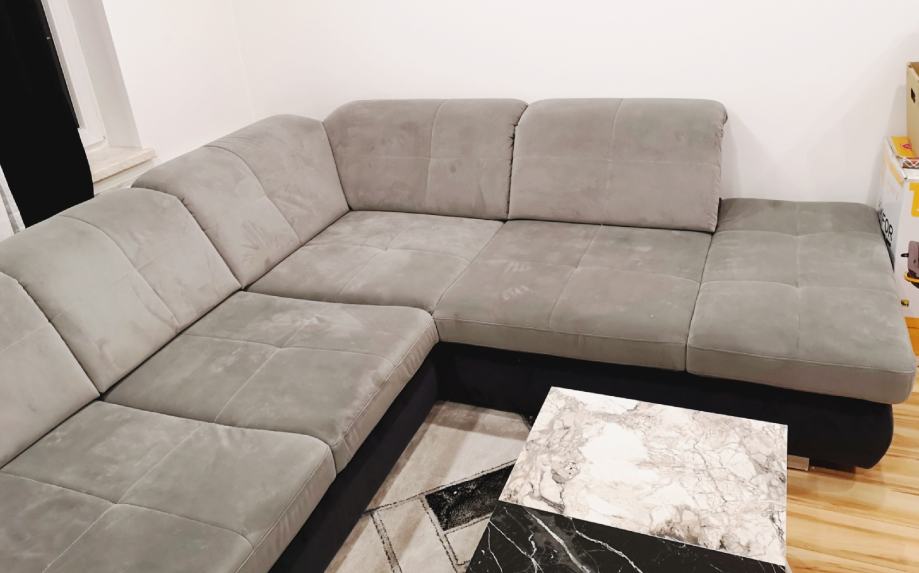 Velikost te sedežne je kar presenetljiva, skoraj 4. Metre v dolžino, zato je potrebno imeti dovolj velik prostor. Priložena je simbolična slika iste sedežne (drugi materiali in barve) iz salona, kjer je videt njeno velikost.
