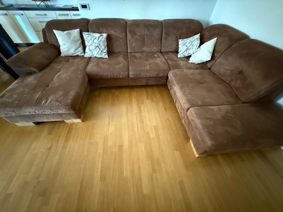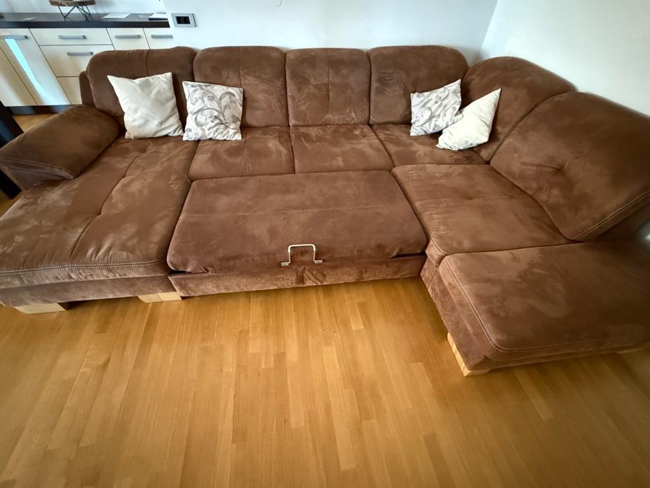 Prodajam rabljeno sedežno garnituro v rjavi barvi, ki je prostorna in udobna. Garnitura je v odličnem stanju. Ima dva pomična hrbtišča, širok počivalnik, pomožno ležišče, prostor za shranjevanje, nastavljivi vzglavniki ter nastavljivi naslon za roke. Mere 340x240. Za več informacij pokličite.