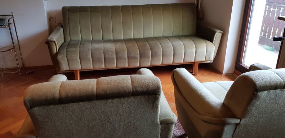 Podarim sedežno garnituro sestavljeno iz troseda in dveh foteljev. Trosed je raztegljiv v ležišče.