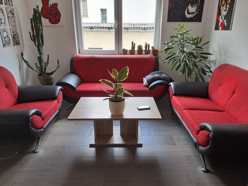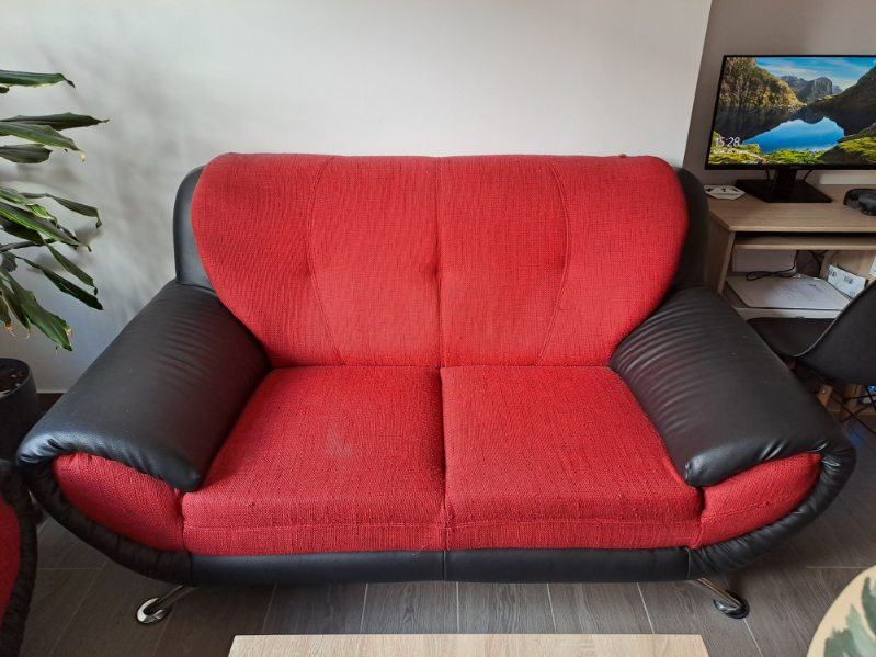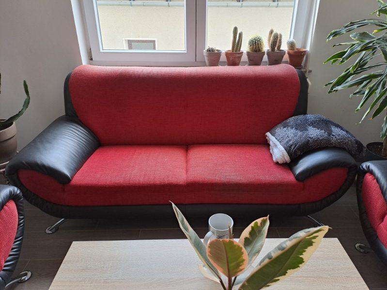 Mrcina je stara 10 let, vzmetenje še skozi brezhibno, ne škripa (perverjeno.), a je oblazinjenje že kar načeto.