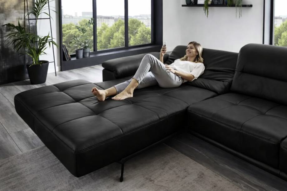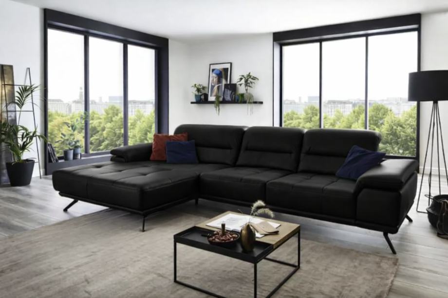 Usnjena kotna sedežna garnitura PIAVE - črna, vrhunska, stara 1 leto