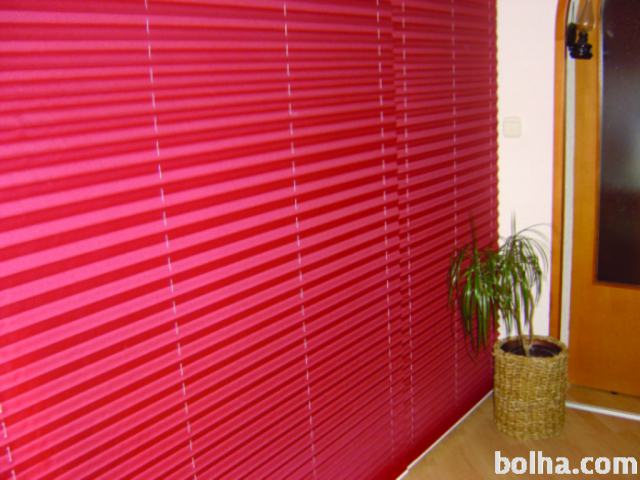 So notranja senčila iz 20 mm plisirane (harmonika) poliesterske tkanine. Uporabljamo sisteme, ki omogočajo zastiranje praktično vseh okenskih odprtin, strešnih oken kot tudi odprtin nepravilnih oblik. Običajno jih montiramo na površino stekla, lahko so prostoviseči in nadomeščajo klasično zaveso. Izdelamo po meri, v številnih materialih po izbiri.