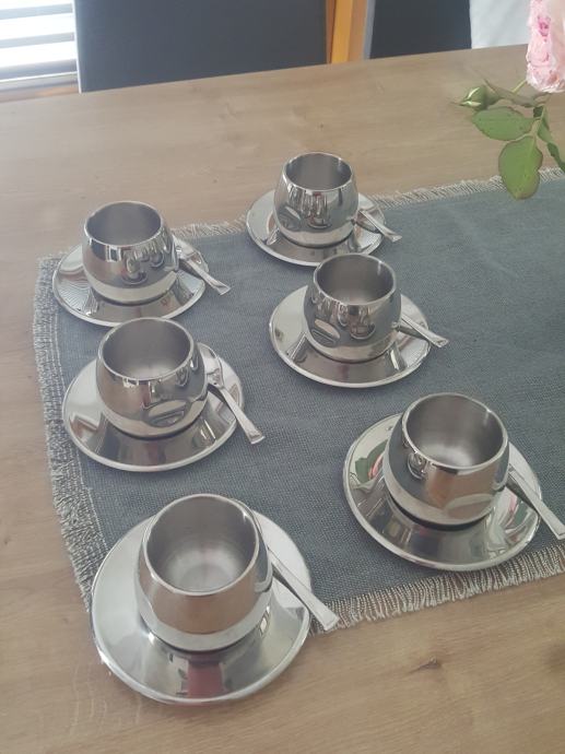 Zaradi neuporabe prodam AMC coffee/tea set, stainless steel 18/10 za 6oseb.Zaradi materiala primerno za barko,camping,...