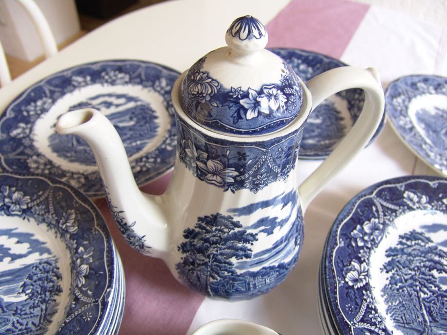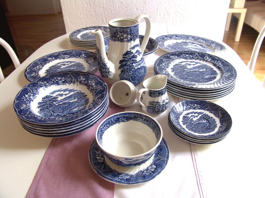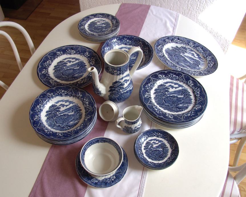 Star angleški servis, število delov je vidno na sliki, proizvajalec Barrats iz Staffordshira, krožniki in posodice različnih velikosti, čajnik in posoda za mleko