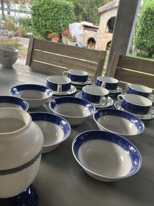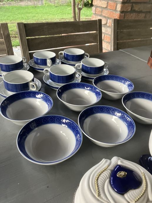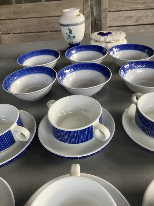 servis porcelan,, 6 kos posodic, 6 kos s podstavki, šatulja in vaza, kot novo