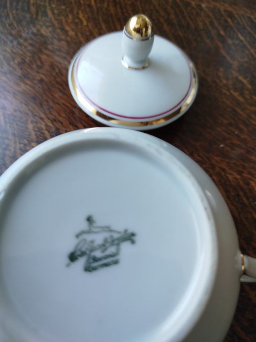 Retro set iz kvalitetnega porcelana Bavaria, z zlato in bordo dekoracijo na obodu,