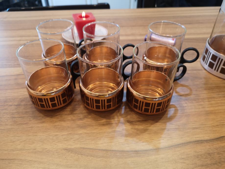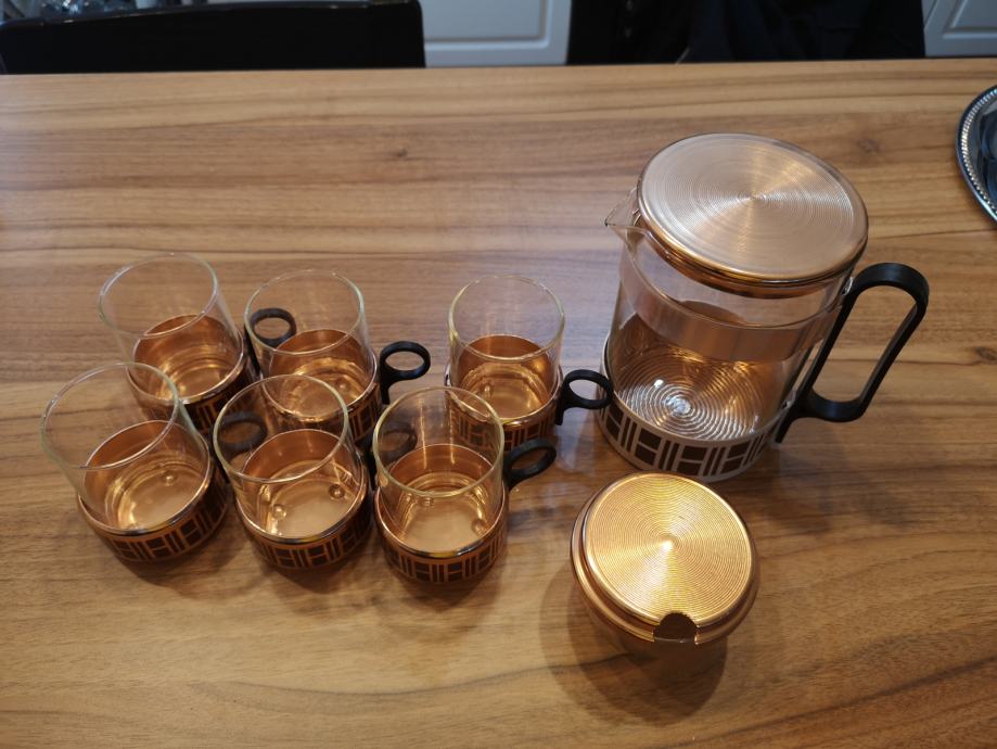 Prodam set za čaj/kavo. Sestavljen je iz 6 skodelic, posodice za sladkor in vrča. Odlično ohranjeno, 2x rabljeno.