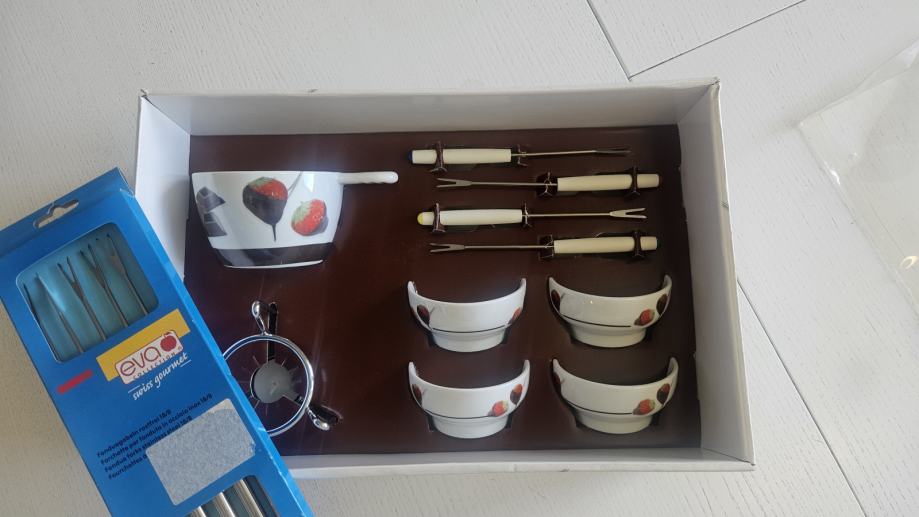 Prodam nov set za čokoladni fondi + dodatne nove vilice.