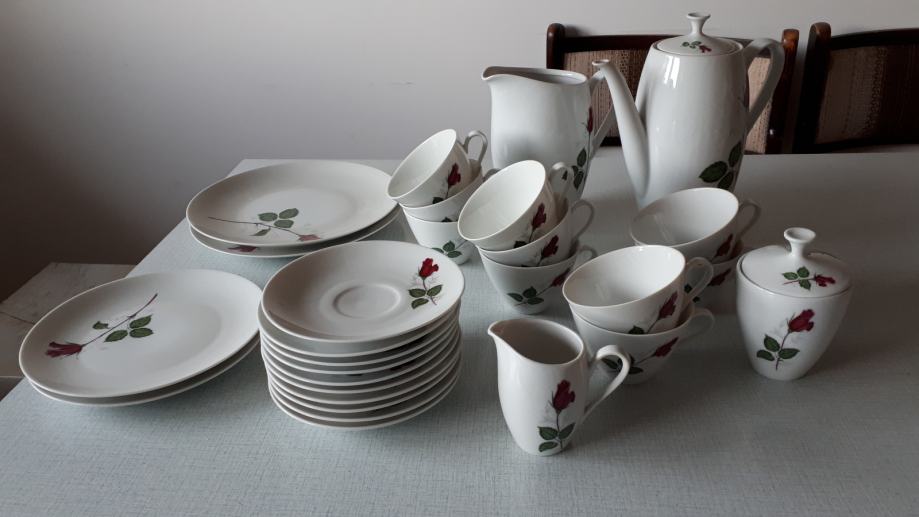 Prodam Winterling servis za čaj. Vsebuje 10 šalic in podstavke, 4 krožnike za sladice, čajnik, vrč za mleko, vrč za vodo, posodo za sladkor.