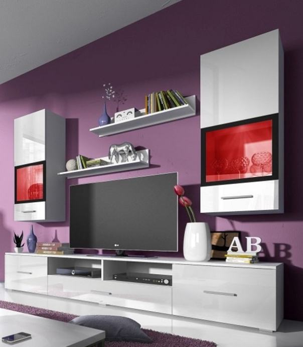 Mali set: regal za TV, 2x polica, 2x stenska omara s steklom
