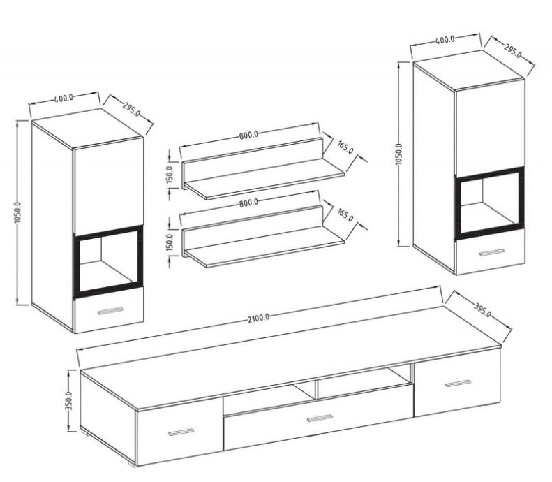 Veliki set: š: 280 cm, v: 35 cm / 110 cm, g: 40 cm