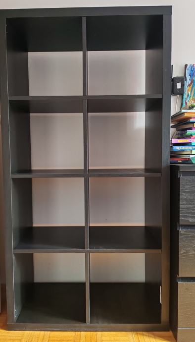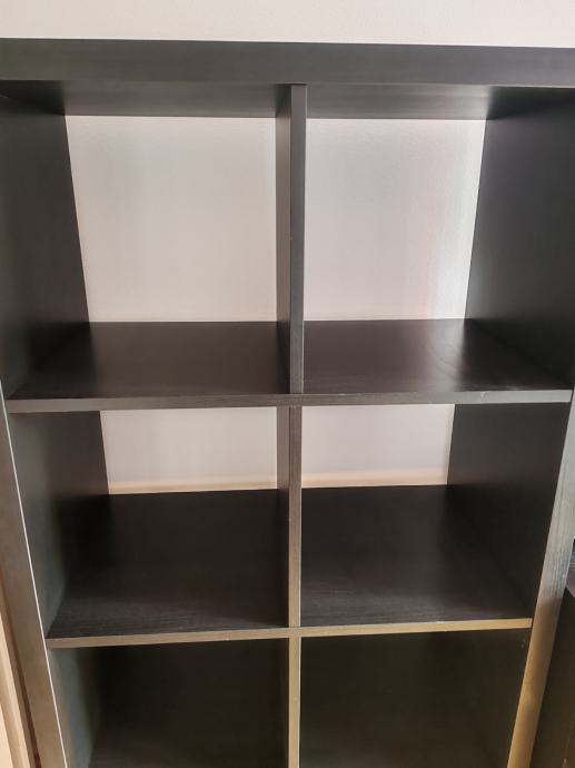 Prodam regal Kallax črno rjave barve z dimenzijami 77x147 cm.