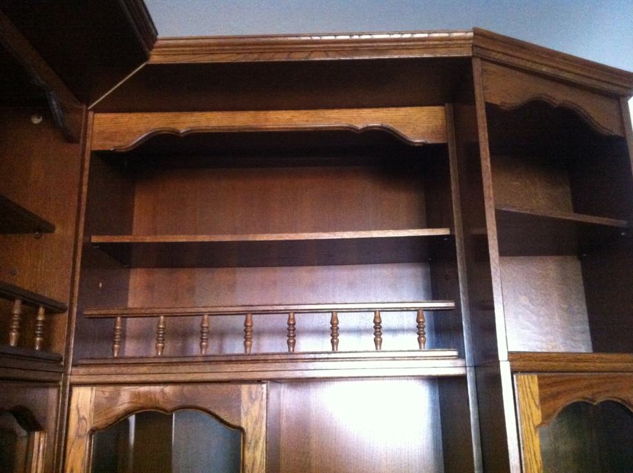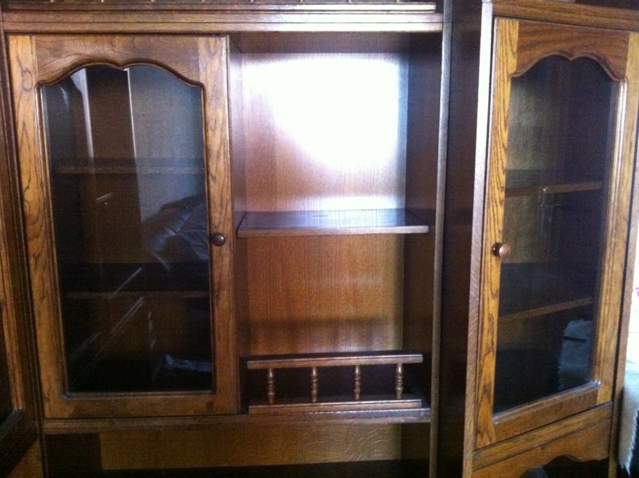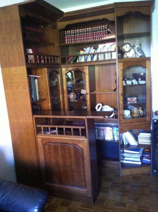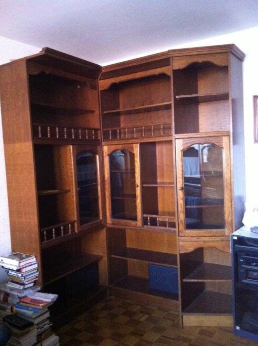 Status: izredno lepo ohranjeno, nikoli seljeno, ves čas v dnevni sobi, uporaba kot knjižna polica, kot vidno na fotografijah v tem oglasu, naprodaj 1 sestav treh omar in bife, ki se lahko poljubno postavljajo skupaj. Naprodaj so prazne sestavljene omare.