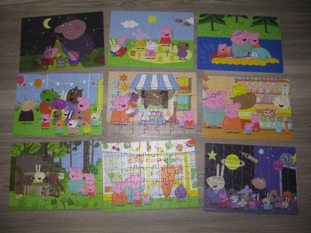 Prodam sestavljanke pujsa Pepa. V kompletu 9 sestavljank in sicer dve 12-delni, dve 24-delni, tri 35-delne in dve 50- delni. Velikost posamezne sestavljanke je 22,5x16 cm. sestavljanke so zelo malo rabljene, lepo ohranjene. cena 12€ za komplet.
