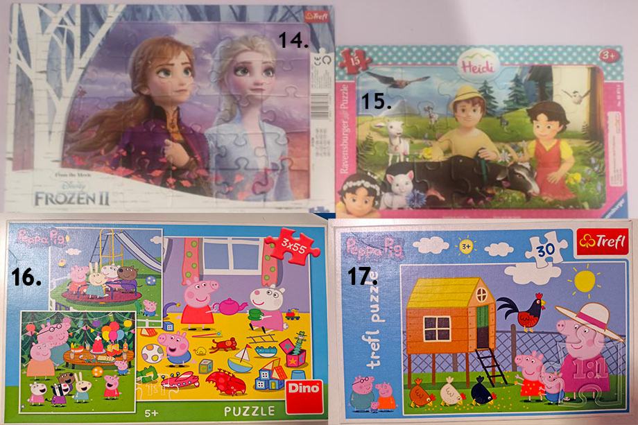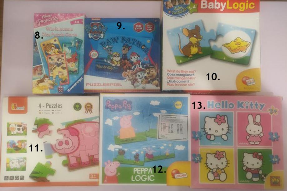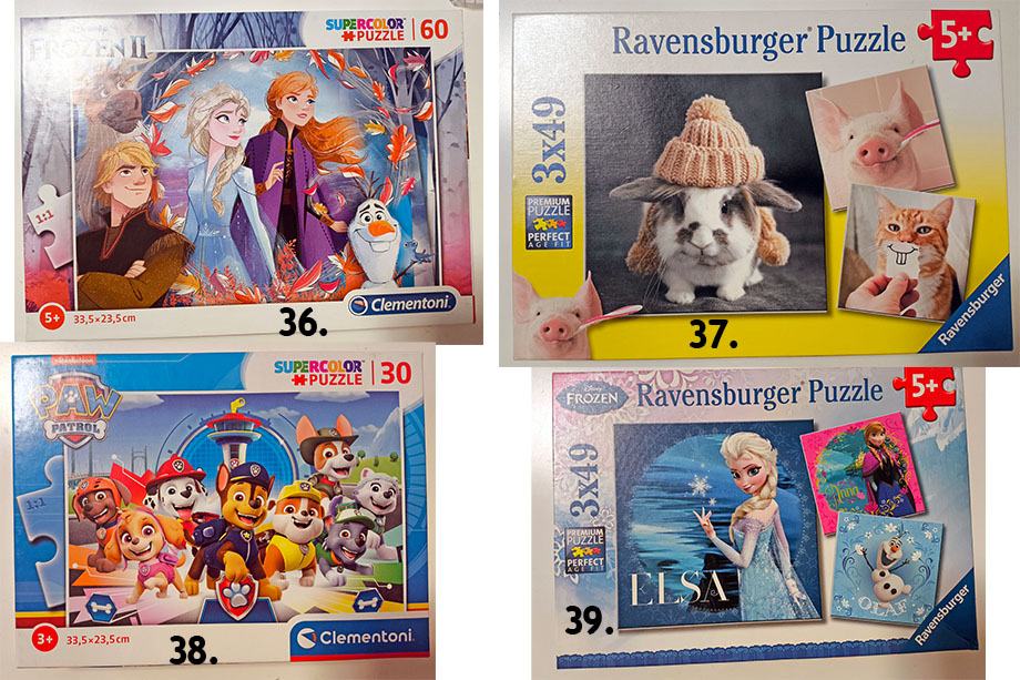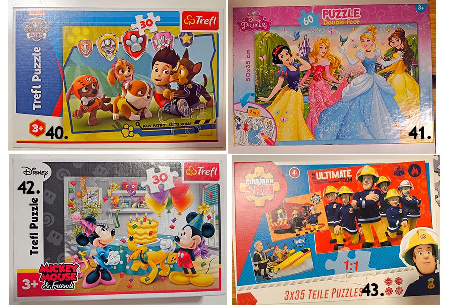 Prodam sledeče puzzle, ali menjam za naslednjo starostno skupino od 5-10let, TAČKE, DISNEY, MICKEY, FROZEN, PEPPA, TOP WING, GASILEC SAMO, HELLO KITTY, PRINCESKE...: