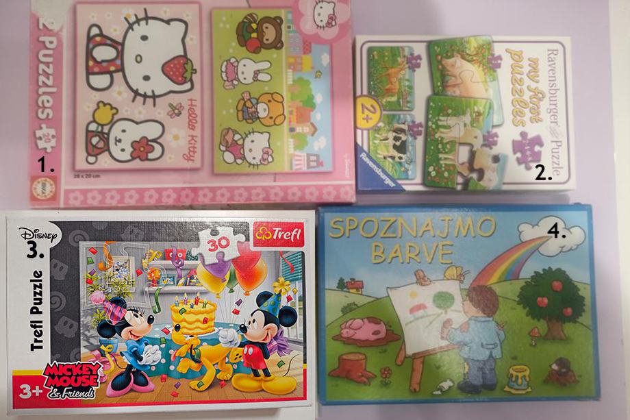 9. škatla ni prava so pa tačke puzzle 1 x 24kos / 4€