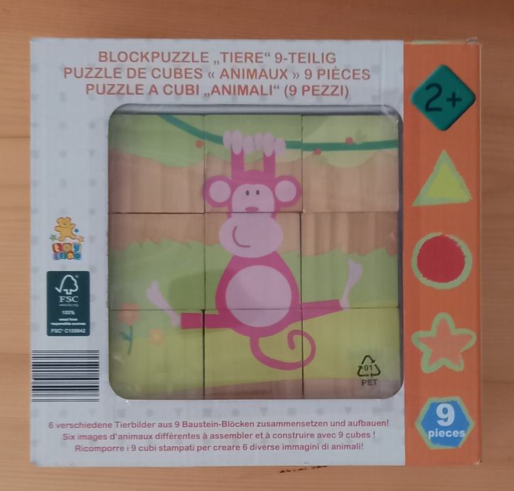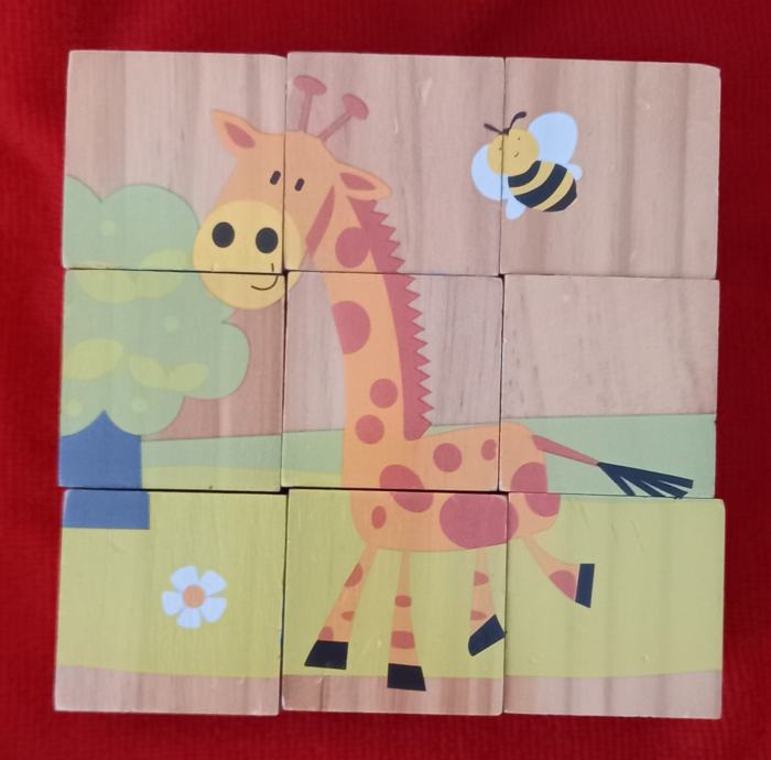 Otrok lahko sestavi slike kot slon, tiger, žirafa, opica, zebra in povodni konj zraven pa se še nauči poimenovanja živali.