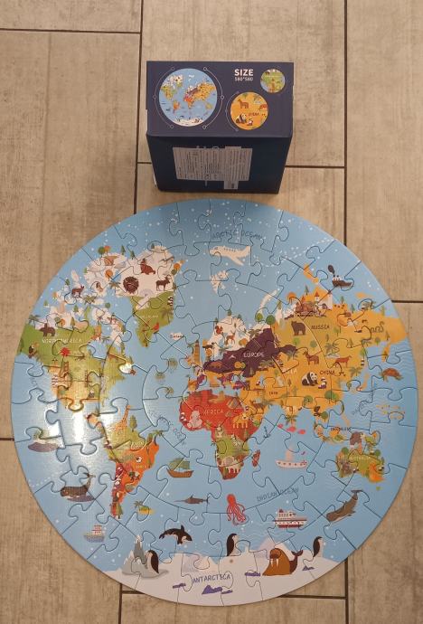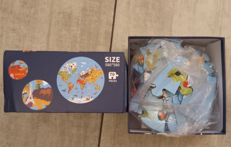 Sestavljanka vsebuje 70 kosov. Je okrogle oblike, veliko cca 58cm.