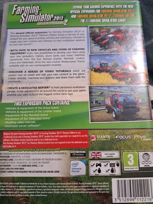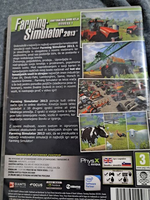 Prodam igro Farming Simulator 2013 in dodatke za njo. Prodajam, zato ker nerabim več. Navodila za to igro so v slovenščini, igra sama pa je seveda v angleščini. Za več info mi PIŠITE na tel. 070 439 889, ker klicem se jaz ne javim!!