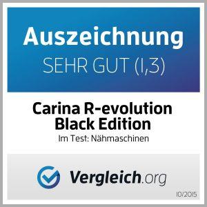 Spletni portal, kateri ocenjuje šivalne stroje VERGLEICH.org Test Award je šivalni stroj Carina R-evolution ocenil z oceno ZELO DOBRO (1.3) in tako osvojil prvo mesto med šivalnimi stroji.