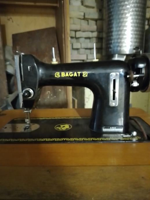 Prodam več kot 70 let star šivalni stroj Bagat, na nožni pogon, v omarici, Potrebeno pričvrstiti jermen ali ga zamenjati, za 50 eur,