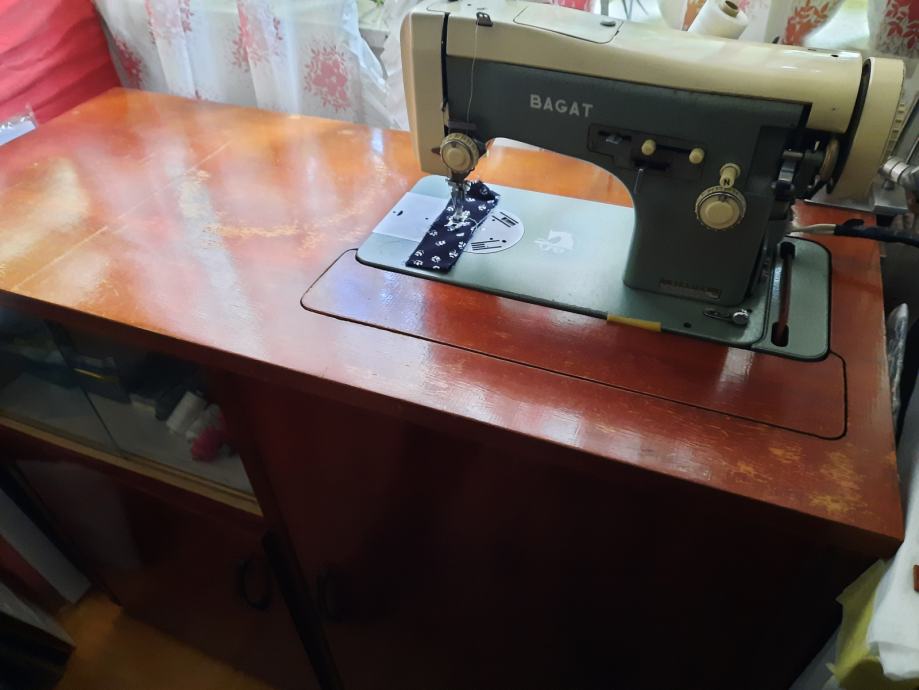 Šivalni stroj v omarici (V:80, Š:100, G:43), delujoč, redno vzdrževan. Ob tem poklonim večjo količino sukancev, gumbov in drugih pripomočkov za šivanje.