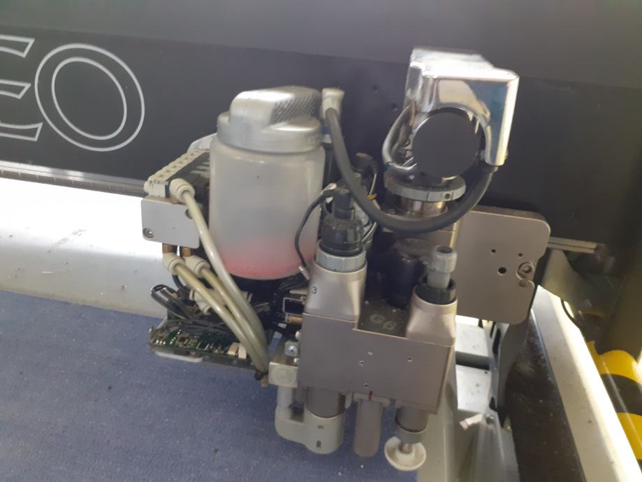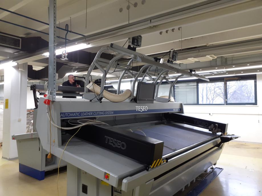predelava: dodatnih 8000 € (predelava brez sistema projeciranja reznih linij na usnje in blago pred rezanjem)
