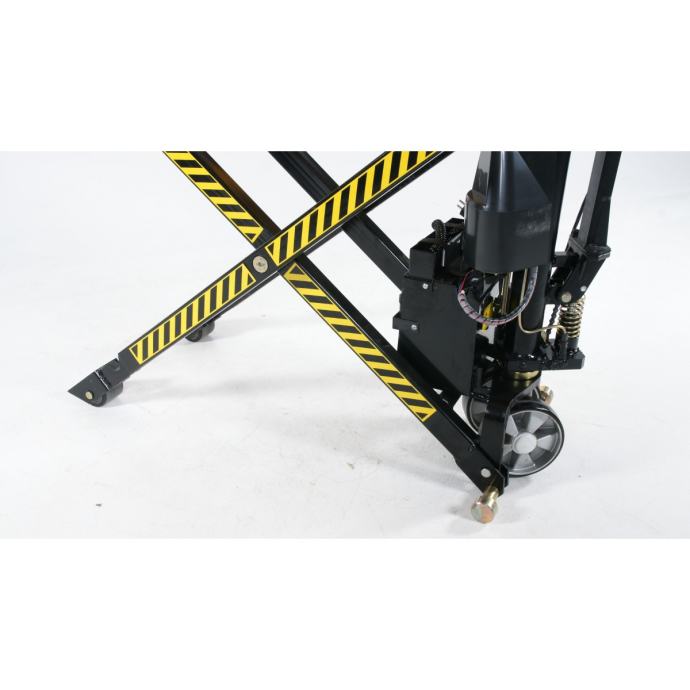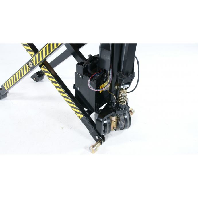 Električni ročni paletni viličar z enojnim hidravličnim valjem - dvižna miza se uporablja za premeščanje in dvigovanje blaga. Paletni viličar PL1000 SAX elektro je zelo enostaven za uporabo in vzdrževanje. Vilice se dviguje s pomočjo elektrike, pomika pa se ga ročno. Kompaktna oblika z akumulatorjem in s črpalko, ki sta nameščena med šasijo in hidravličnim valjem, omogoča odlično manevriranje in dostopnost. Če je akumulator preveč izpraznjen, lahko tovor dvigate in spuščate tudi ročno. Dvig brez tovora traja 11 sekund. Dvig s tovorom traja 19 sekund. Akumulator 12 V/60 Ah. Vgrajen polnilec 10 A/12 V; nazivna napetost 220 V.