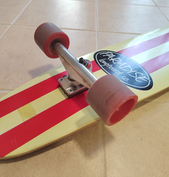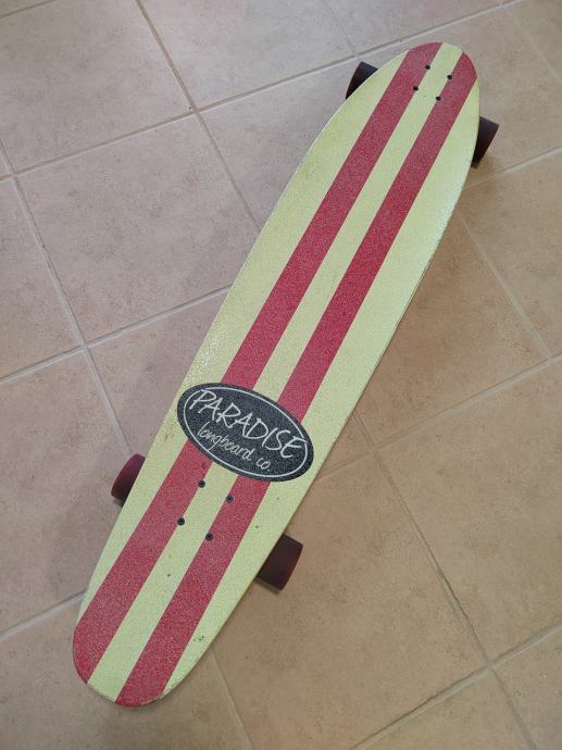 Prodam lepo ohranjen longboard PARADISE co., kupljen v specializirani trgovini v Salzburgu. Vedno je bil hranjen v suhem notranjem prostoru, stanje razvidno na slikah.