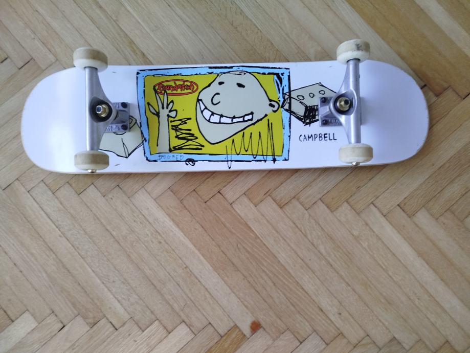 2-krat uporabljen skateboard. Je v super stanju, nič ni zlomljeno ali poškodovano. Originalna cena je bila 150€. Prodajam ker mi ni več do skejtanja. Za več informacij pokličite 071 373 209.