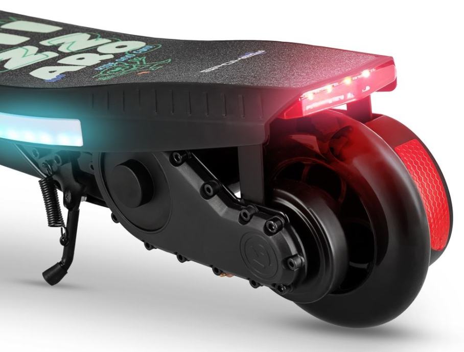 Sprednje bele in zadnje rdeče LED luči skupaj z barvnim LED trakom na plošči zagotavljajo odlično vidljivost tudi po temi.