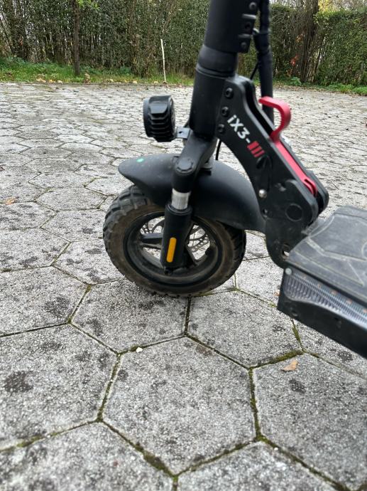 Skiro je kupljen februarja letos. Ima garancijo. Vožen samo po mestu. Ima tako sprednje kot zadnje amortizerje kar omogoča udobno vožnjo. Lahko se ga vozi tudi off road. Ima 10ah 48v baterijo ki omogoča doseg do 40km. Pri največji hitrosti 40km/h ima doseg nekaj čez 20km. Priložim še škatlo, polnilec, orodje.