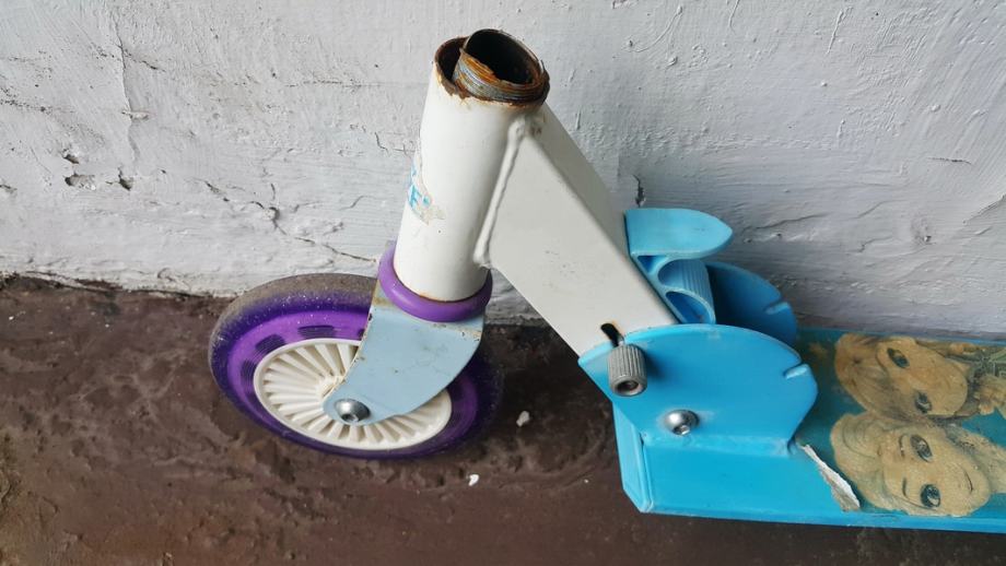 Prodam polomljen dekliški kovinski skiro z motivom od Disney Frozen. Krmilo se je odlomilo nekaj časa nazaj (in izgubilo). Vsaj obe kolesi sta še vredu (premer okoli 11,5 cm). Tako da je primeren za rezervne dele, kak DIY projekt - ali pa če bi mu pa kdo znal izdelati tudi krmilo. Kakorkoli... Že čaka na svojega novega lastnika.