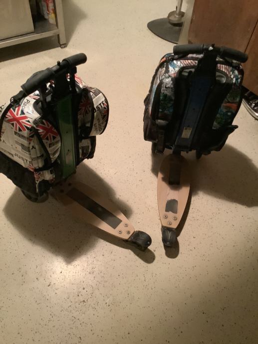Prodam skiro roljet z pripadajočo šolsko teorbo. Ena torba je popolnoma nova in ima še dodatno vgrajena kolesca in ročaj, druga pa malo rabljena in lepo ohranjena. Obe torbi sta nepremočljivi. Cena za komlet torba in skiro je 100€, če pa se odločite za komplet pa je cena 160€.